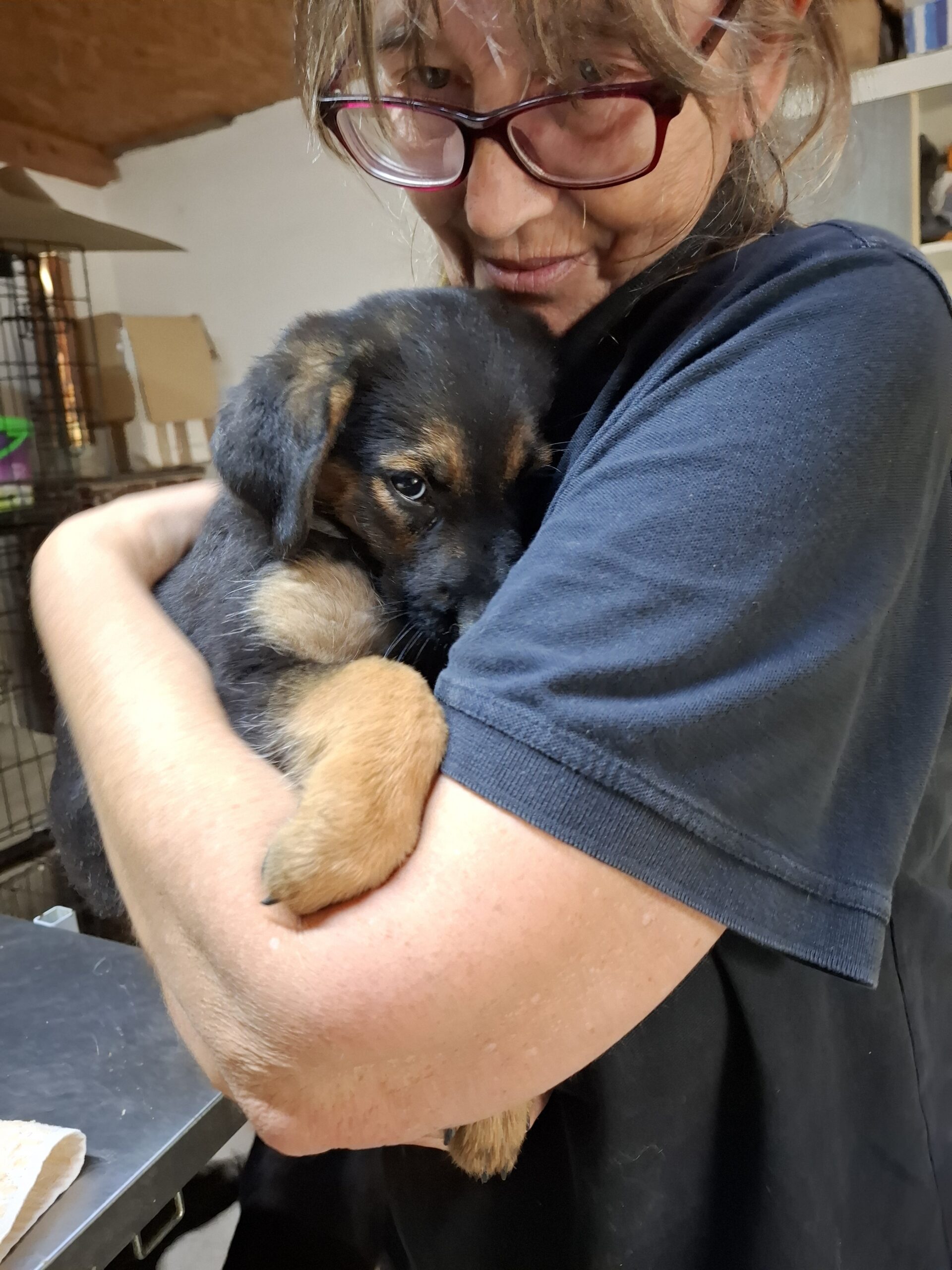 Emyra wurde von einer Familie in einem Nachbarort Ghirdoveni gefunden. Sie sind zwar aus Bukarest, haben aber ein Haus am Dorfrand von Ghirdoveni, wohin sie nur an den Wochenenden kommen. Zu Hause, in Bukarest, haben sie 16 Katzen die auch in Ghirdoveni ausgesetzt und von ihnen gefunden wurden. Deshalb konnten sie die kleine Emyra und ihre Geschwister nicht behalten. Sie kontaktierten Marilena und brachten sie Dr. Malina. Die Geschwister verstarben alle. Das süße, liebe Hundemädchen Emyra wurde vorerst auf der Kranken / Welpenstation untergebracht, wo sie auch noch mit Kalzium und Vitaminen versorgt wird.