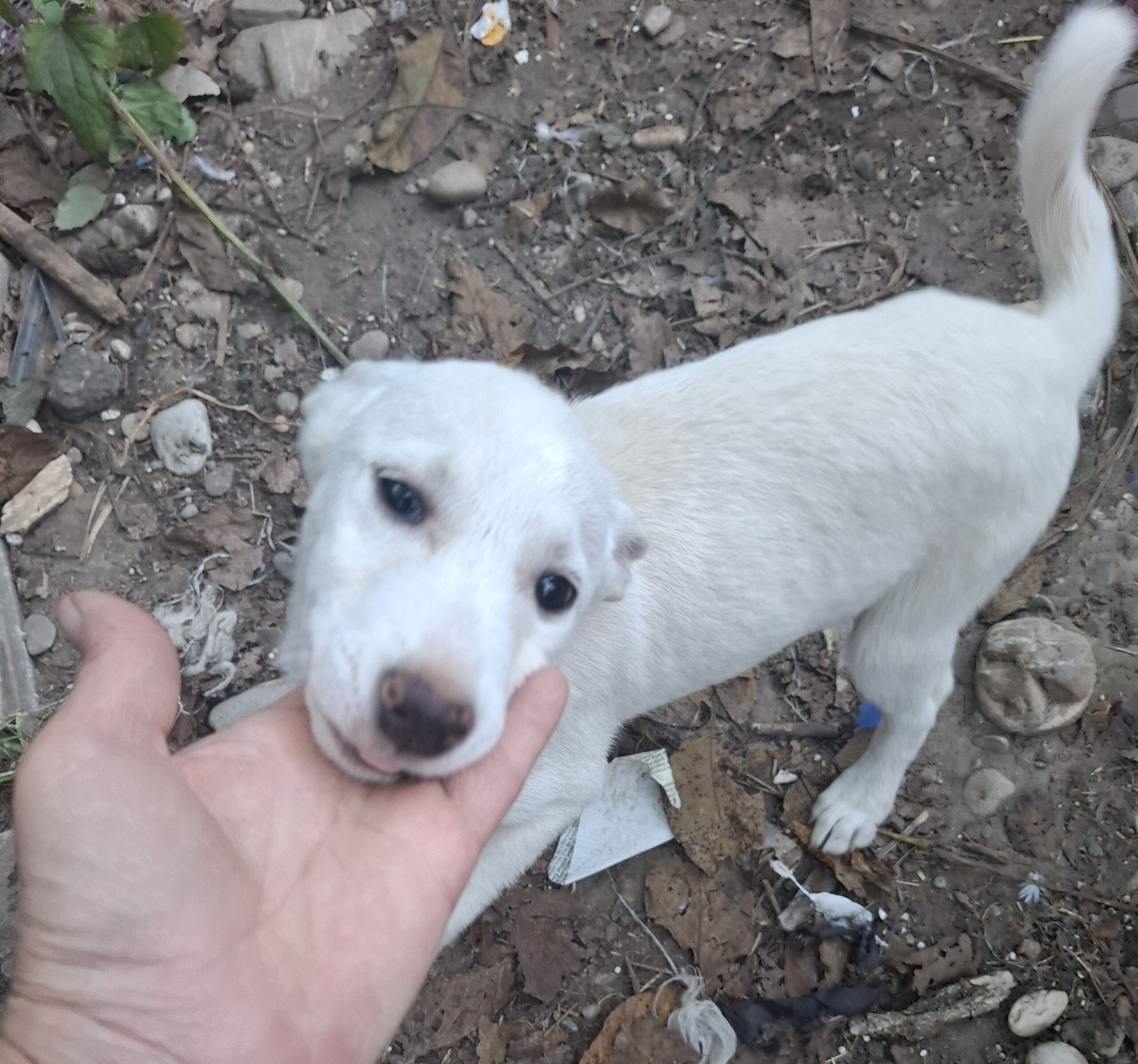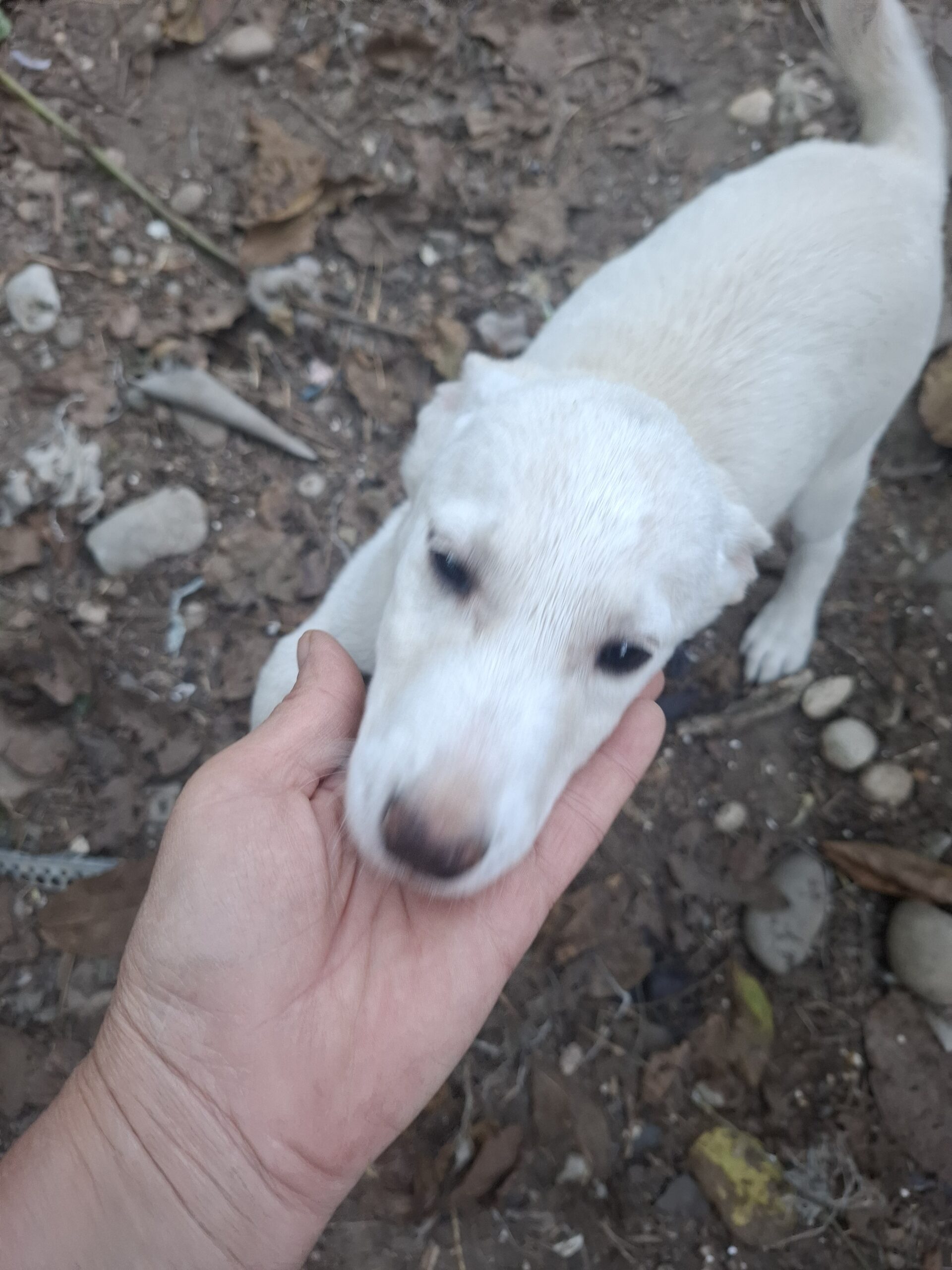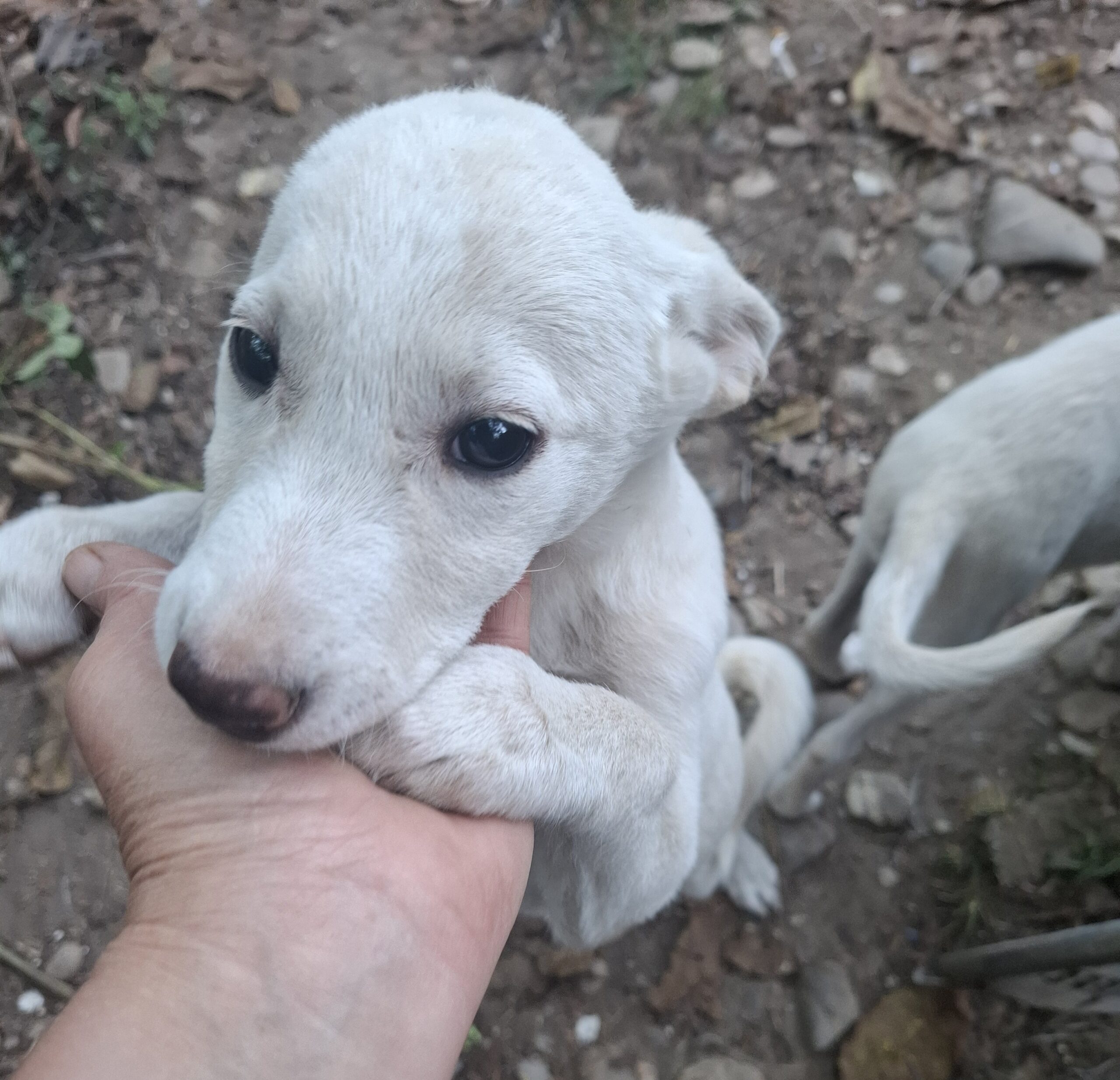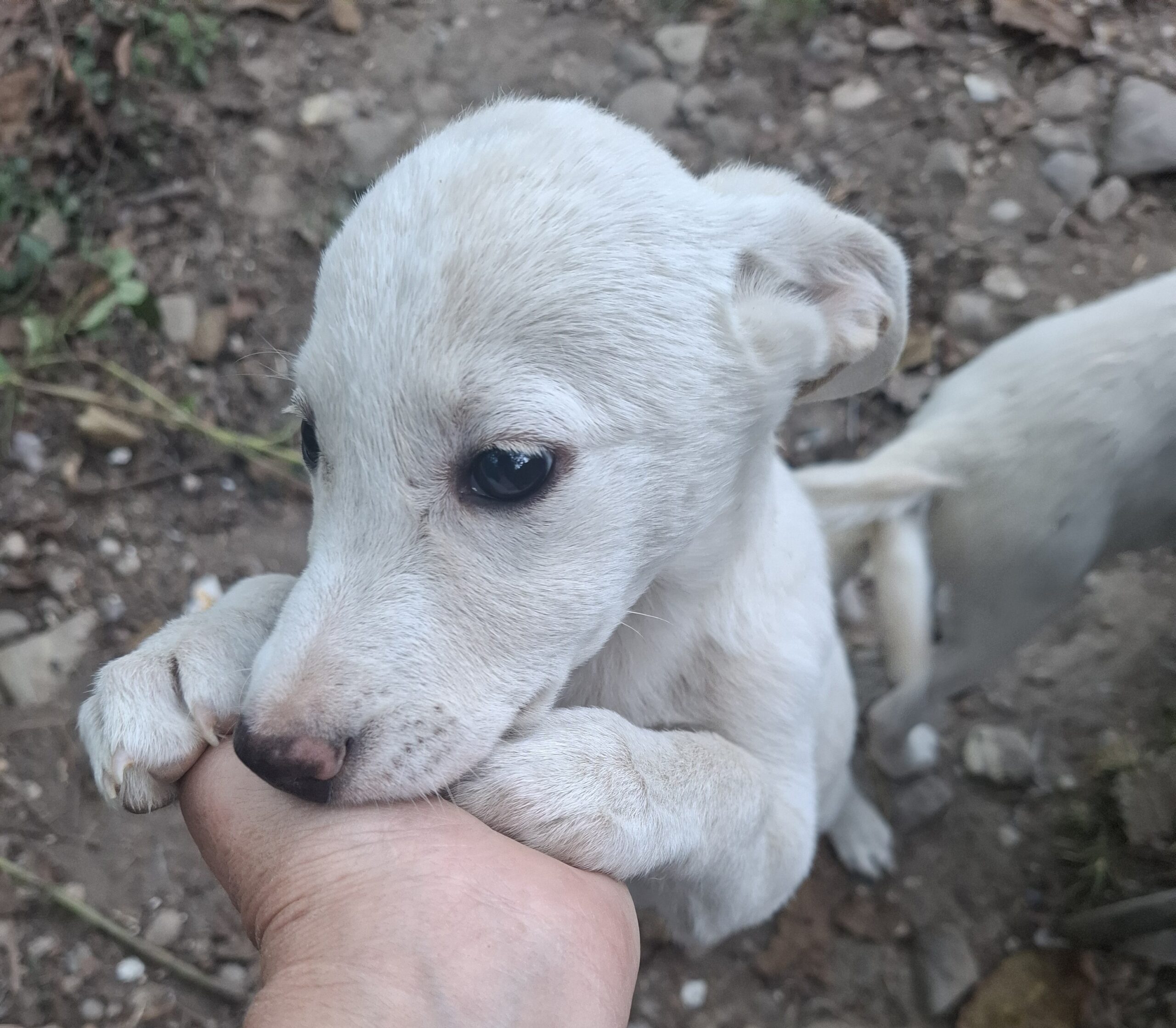Lia (1) und ihre 3 Geschwister Lutz, Clara und Fine wurden am Waldrand neben einer befahren Straße ausgesetzt. Marlena fand sie als sie vom Einkaufen zurück fuhr. Sie lockte sie mit Futter an und konnte sie dann endlich ins Auto einladen. Die 4 Welpen wurden erst einmal zum Tierarzt gefahren. Alle waren ziemlich unterkühlt und mussten eine Nacht in der Praxis bleiben. Bei Ileana im Garten fanden die 4 erst einmal einen Zufluchtsort.
