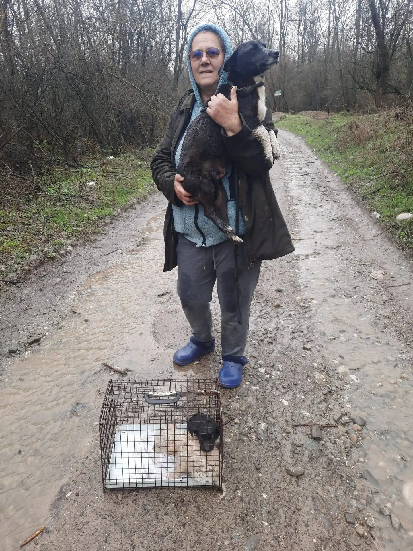 Auf der Fahrt von Ploesti nach Moreni sah Marilena an einer sehr befahrenen Straße eine Hündin im Graben. Sie konnte sie sichern und stellte fest, dass sie geschwollene Zitzen hat. Es war klar – irgendwo waren Welpen. Sie rief an und er kam zu Hilfe, die Welpen suchen.