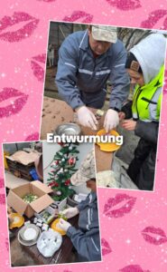 Alle anfallenden Tierarztrechnungen für Medikamente, Impfungen, Chip, Zusatzfutter, Wurmkuren, Spotons konnten beglichen werden. Alle Hunde konnten entwurmt werden. Futter für die Welpen, Junioren, junge und alte Hunde und die Katzen konnte gekauft werden. Auch der Katzensand musste wieder gekauft werden. Das Spezialfutter für Madita, Erich, Murphy1 und Diamond konnte gekauft werden. Die extra Weihnachtsleckereien für alle Hunde wurden besorgt. Junghunde konnten kastriert werden. Die alten und kranken Hunde bekamen Hühnchen. Das Auto wurde betankt und die Löhne ausgezahlt. Stroh und Gas wurden gekauft und die Rechnung für die Leerung des Septic Tanks wurde beglichen.